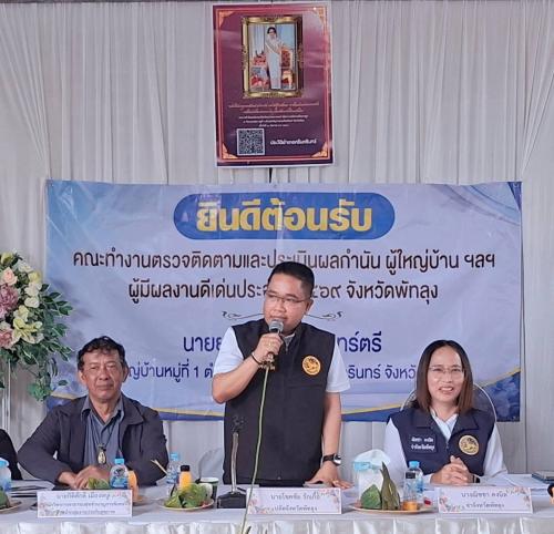 นางจุฑาภรณ์ รักพริก พัฒนาการอำเภอศรีนครินทร์ มอบหมายให้นายธรรมรงค์ สีอินทร์ นักวิชาการพัฒนาชุมชนปฏิบัติการ และนางสาวอาทินาถ พฤฒินันท์โชติกุล นักวิชาการพัฒนาชุมชนปฏิบัติการ เข้าร่วมการประกวดผู้ใหญ่บ้านยอดเยี่ยมและผู้ช่วยผู้ใหญ่บ้านยอดเยี่ยม ประจำปี 2569 โดยมีนายอดุลย์ หมื่นลึก นายอำเภอศรีนครินทร์ ให้การต้อนรับนายโชคชัย รักเกื้อ ปลัดจังหวัดพัทลุง พร้อมคณะทำงานตรวจติดตามและประเมินผลงาน ในการพิจารณาคัดเลือกผู้ใหญ่บ้านยอดเยี่ยม และผู้ช่วยผู้ใหญ่บ้านยอดเยี่ยม เพื่อเข้ารับรางวัลฯ